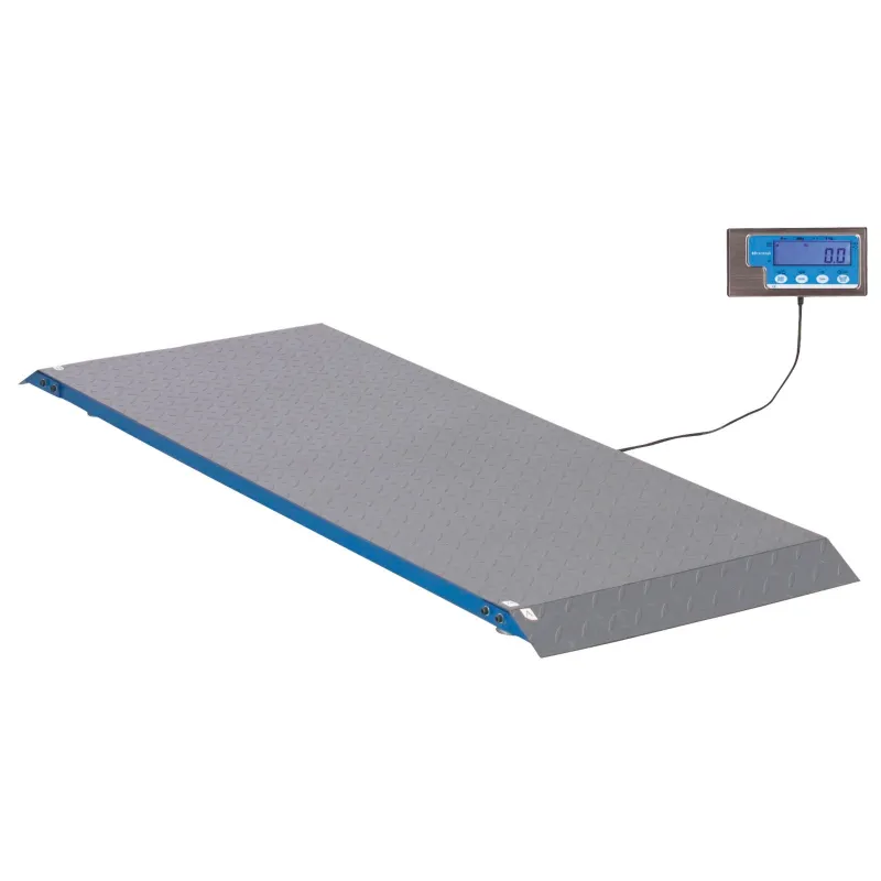 structure robuste en acier thermolaqué avec surface profilée antidérapante, rampes d’accès des deux côtés et pieds réglables en hauteur pour compenser les irrégularités du sol.