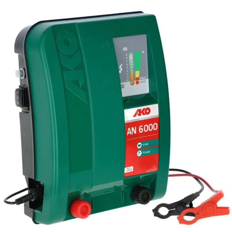 l'AKO Mobil Power AN 6000 offre une énergie de stockage de 7 J et une tension de 12 000 V. Idéal pour les clôtures jusqu'à 40 km sans végétation. INFO : l'élimination régulière de la végétation augmente la sécurité du troupeau grâce à de faibles décharges