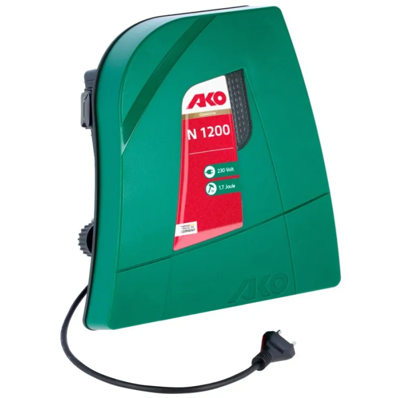 AKO Power N 1200 offre une énergie de stockage de 1,70 J et une tension de 12 500 V. Idéal pour les clôtures jusqu'à 10 km sans végétation. INFO : éliminez régulièrement la végétation afin d'éviter les dérivations et d'augmenter la sécurité du troupeau.