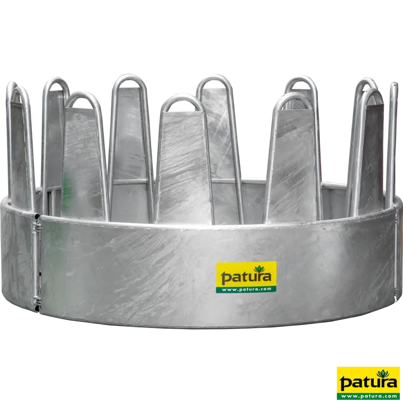 Le revêtement en tôle du râtelier circulaire équin empêche les animaux de se piéger dans les parties critiques des arceaux.