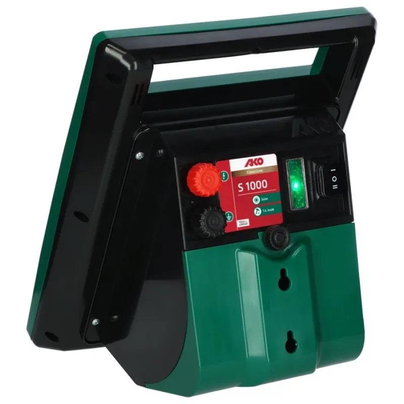 Efficace, robuste, durable : AKO Sun Power S 1000. La batterie 12 volts fournie et le panneau solaire 8 watts installé à demeure, associés à la gestion intelligente de la batterie et au circuit à faible consommation d’énergie, permettent un fonctionnement continu sans entretien pendant la principale saison de pâturage.