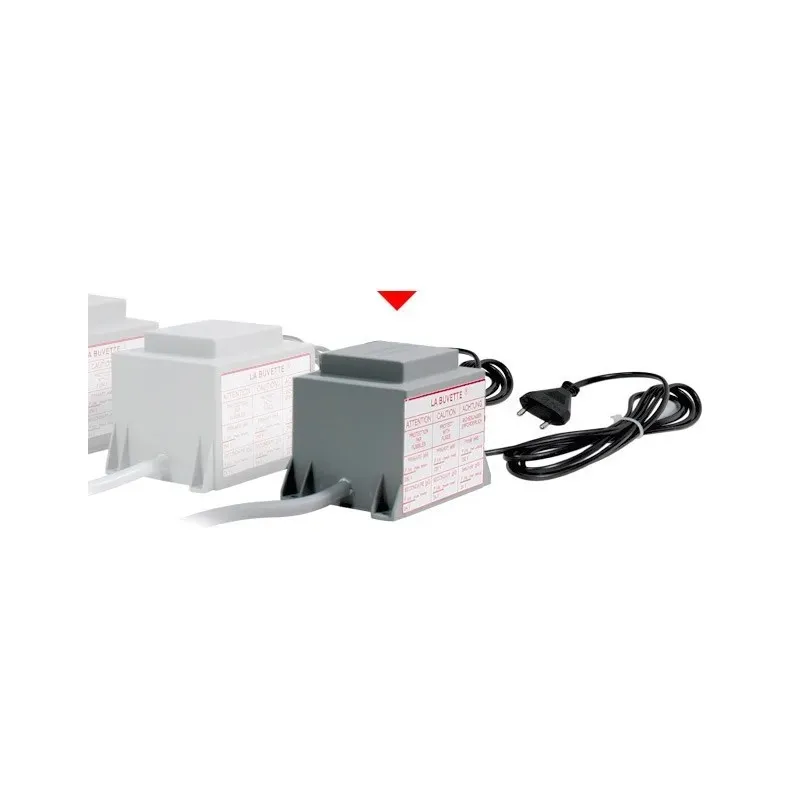 Transformateur 230/24 V blindé norme européenne EN 60.742 pour abreuvoirs antigel électriques.
